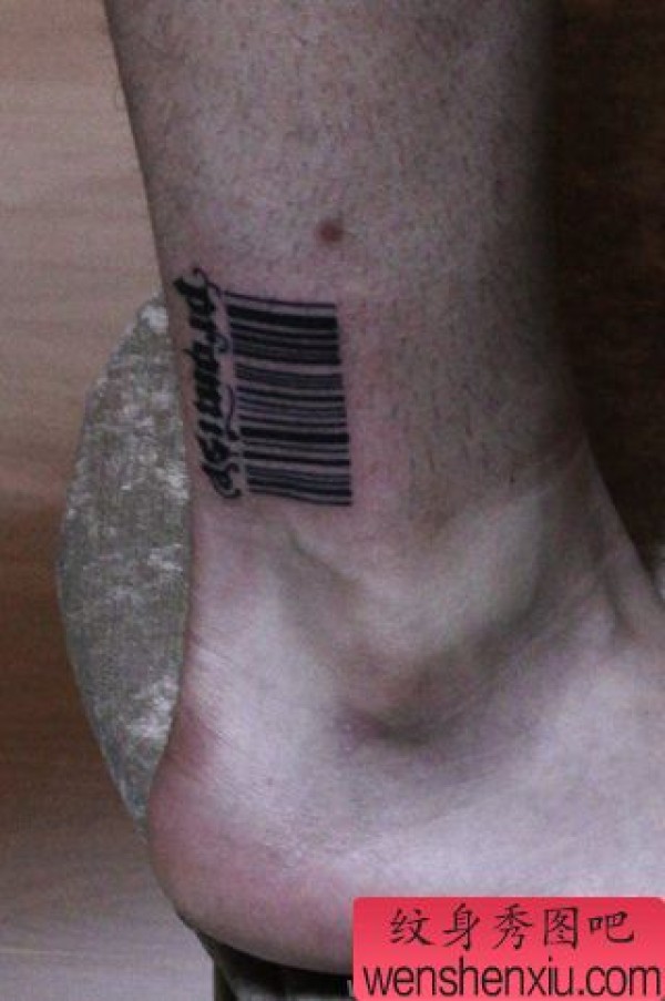 男士脚部条形码纹身图案