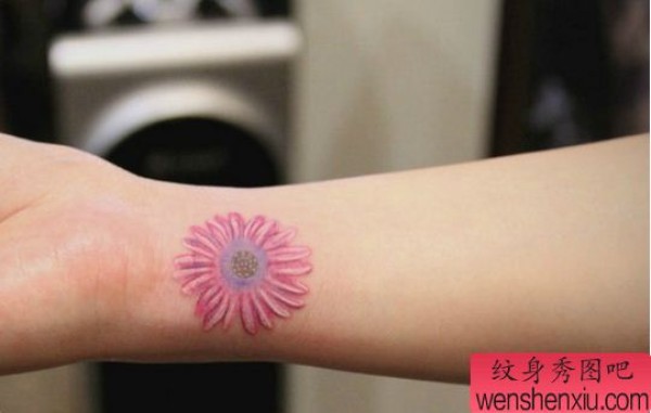 纹身图吧分享一张女性手腕邹菊纹身图案