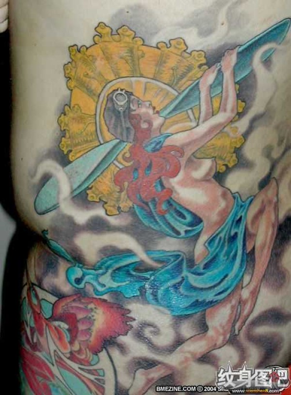 分享一款腰部时尚性感的蝶恋花纹身图案_腰部纹身图案大全_纹身图吧