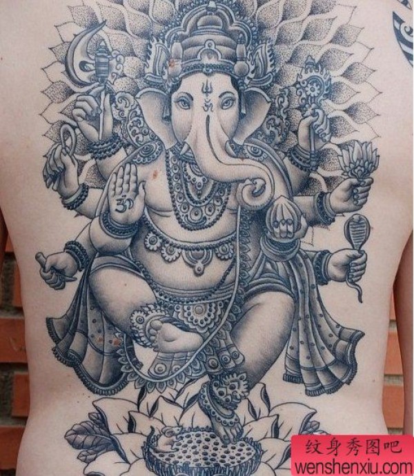 满背象神纹身图案