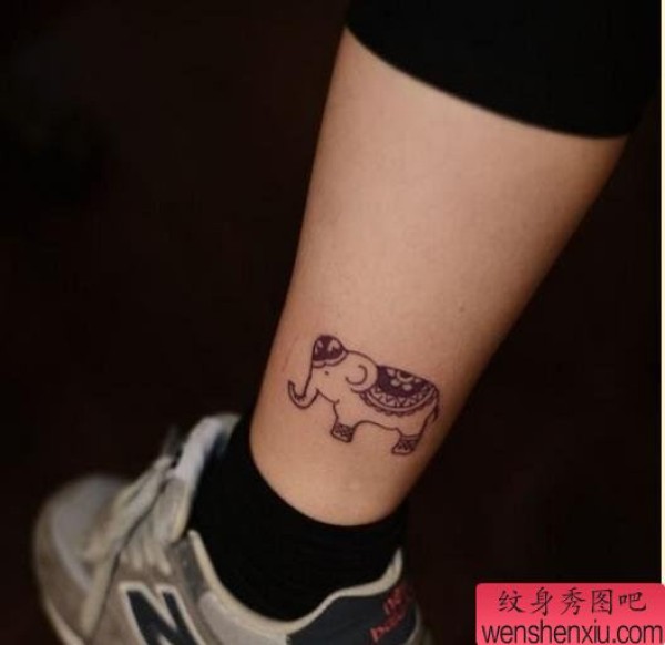 纹身图吧分享一张脚踝卡通小象纹身图案