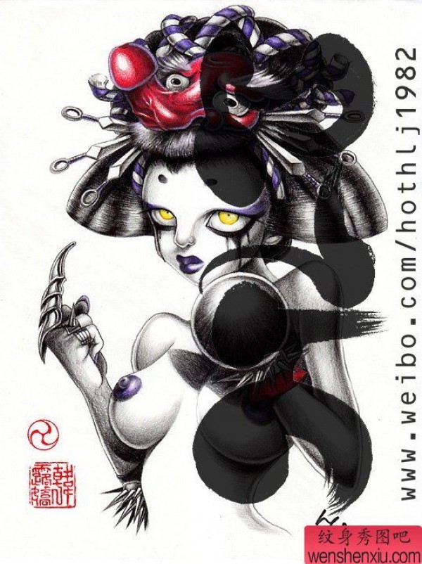 纹身图吧分享一张艺妓纹身图案