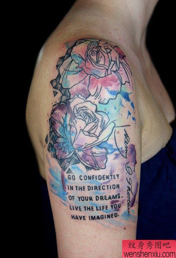 肩背彩色水墨纹身图案