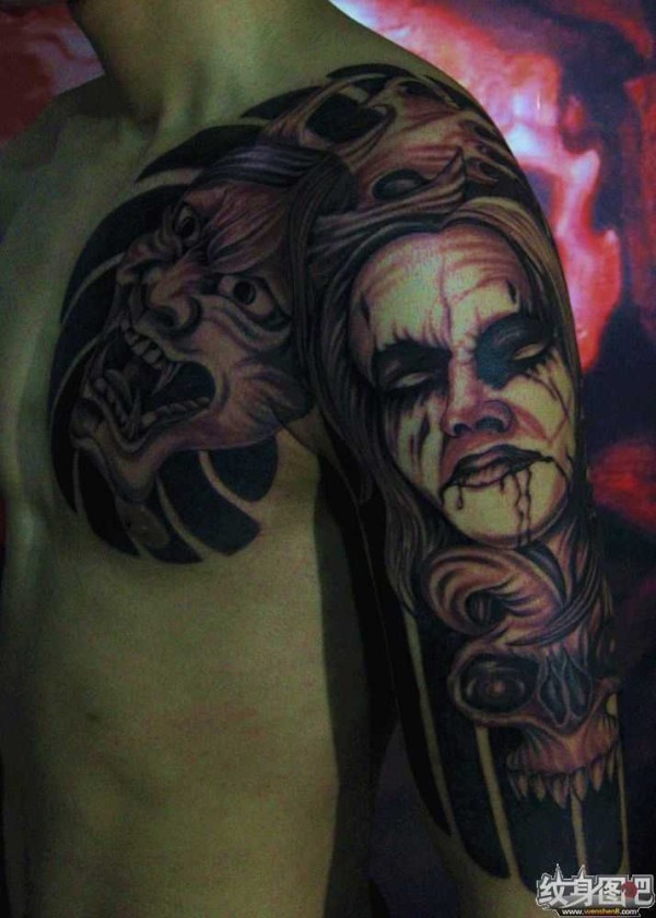 能面万媚纹身手稿_52张日式能剧面具纹身手稿图案素材欣赏