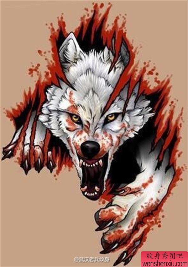 撕皮狼纹身图案