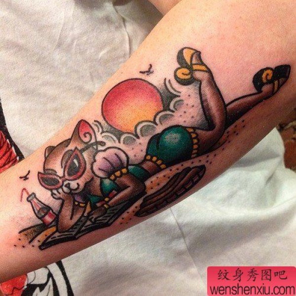 手臂彩色猫咪纹身图案