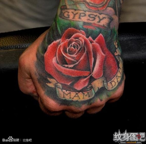 40款满手背玫瑰花纹身图案