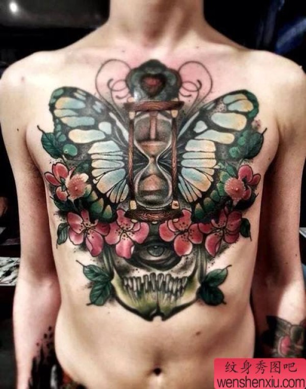 纹身图吧分享一张胸部个性欧美彩色纹身图案