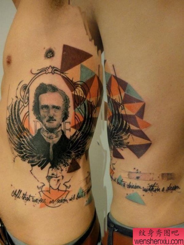 腰部之特别风格翅膀人物肖像三角形纹身图案