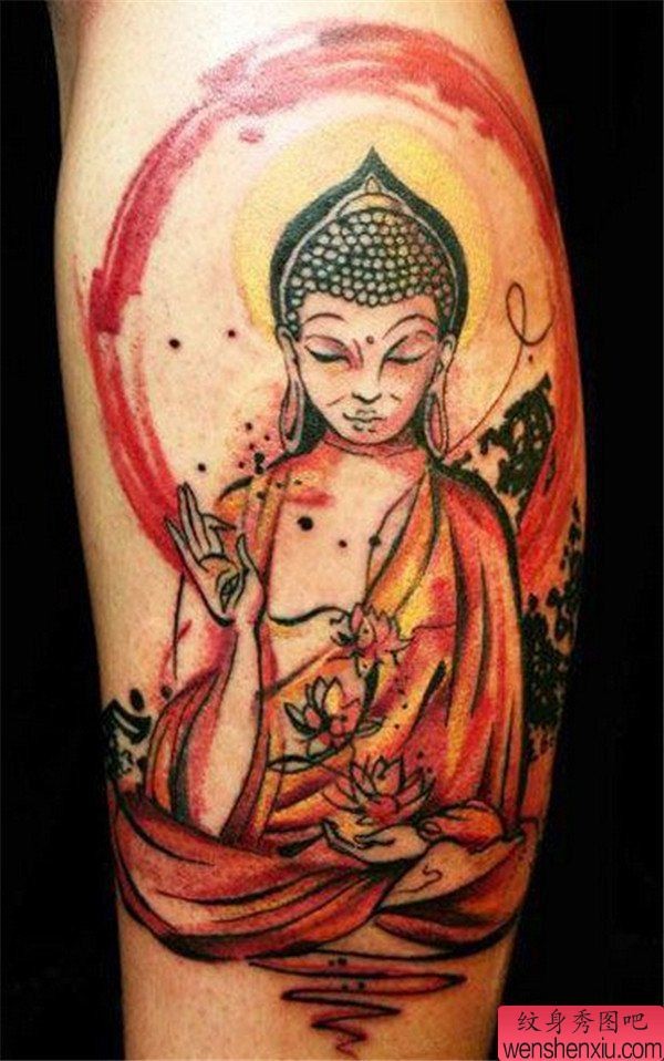 腿部佛纹身图案