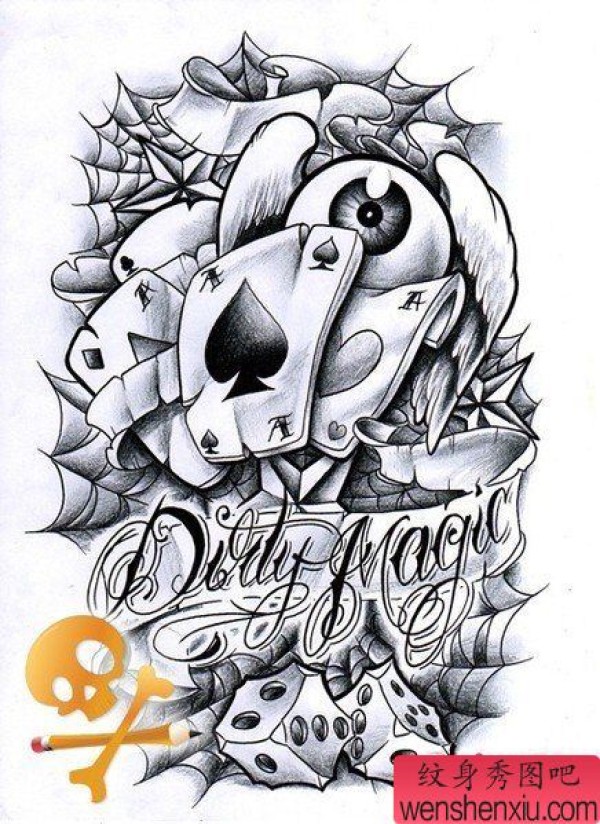 纹身图吧分享一张欧美风格扑克牌纹身手稿