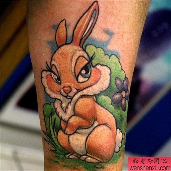 纹身图吧分享一张腿部彩色兔子纹身图案
