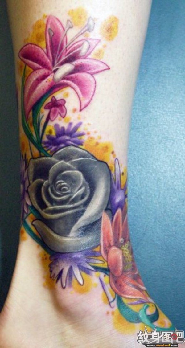 分享一款脚踝莲花纹身图案_脚部纹身图案大全_纹身图吧