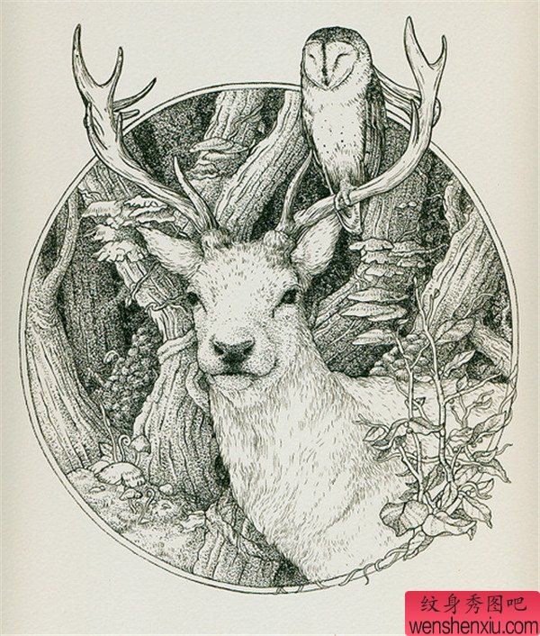 一组18张漂亮的欧美newschool动物纹身手稿图案