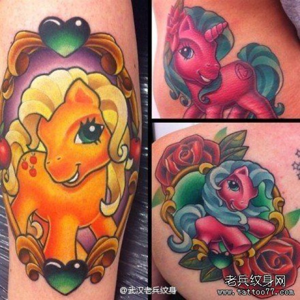 彩色个性独角兽纹身图案