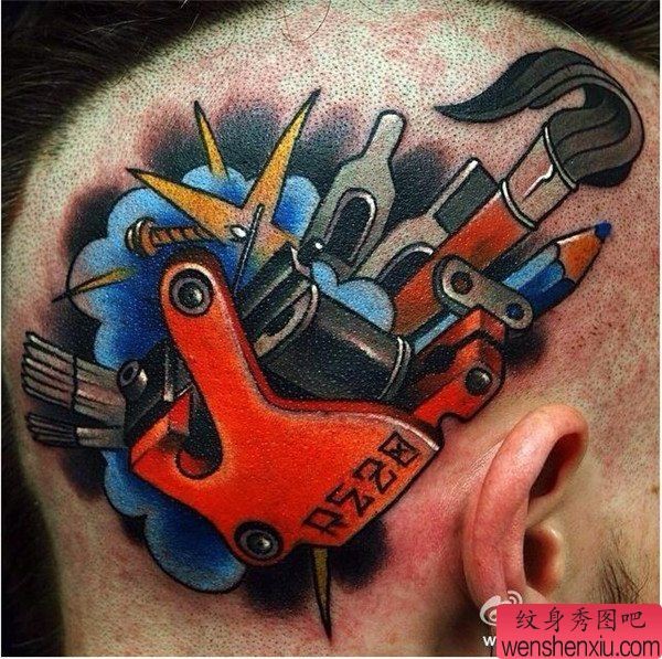 纹闪电分享一张头部彩色个性纹身机纹身图案