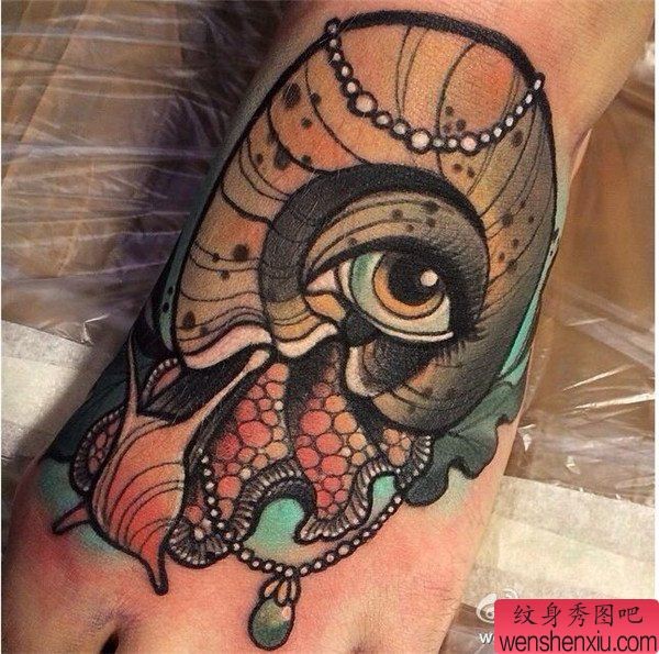 一张脚背个性蜗牛纹身图案