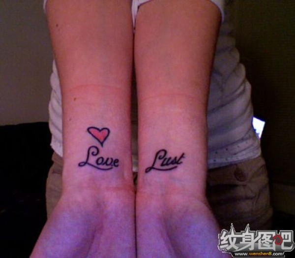 两个手腕上简单的字母纹身