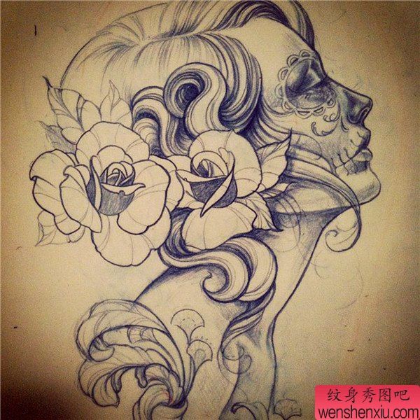 女郎纹身手稿图案