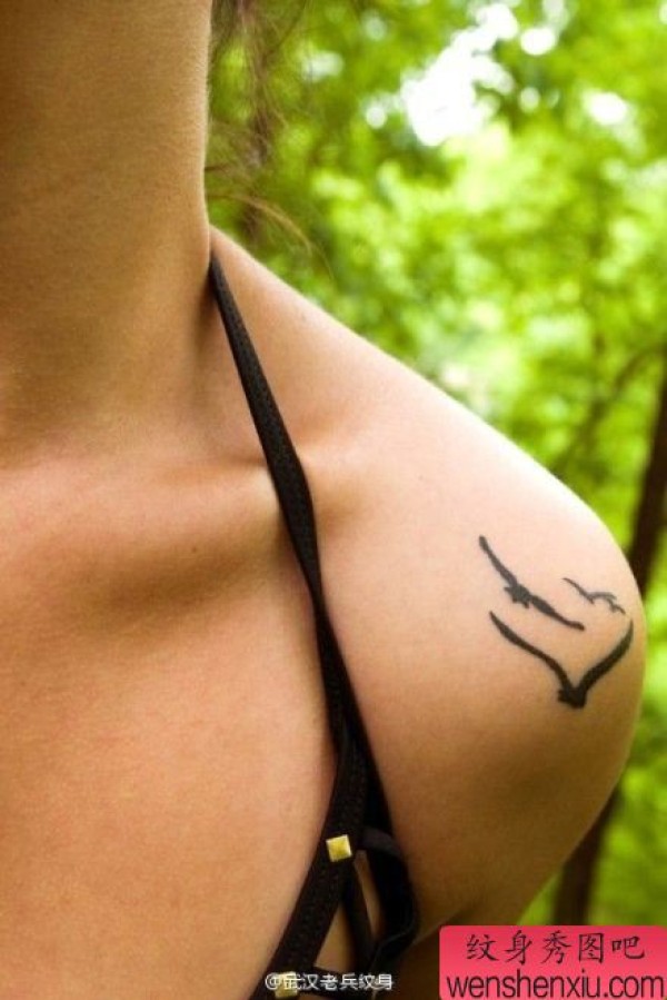 纹身图吧分享一张女性肩部海鸥纹身图案