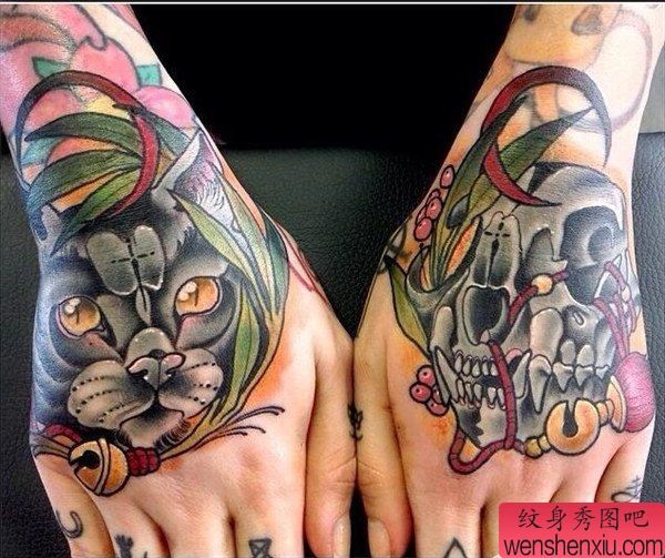 纹身图吧分享一张手部school纹身图案