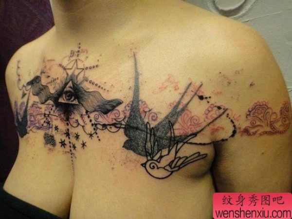 女性胸部之特别风格诱人的上帝之眼纹身图案
