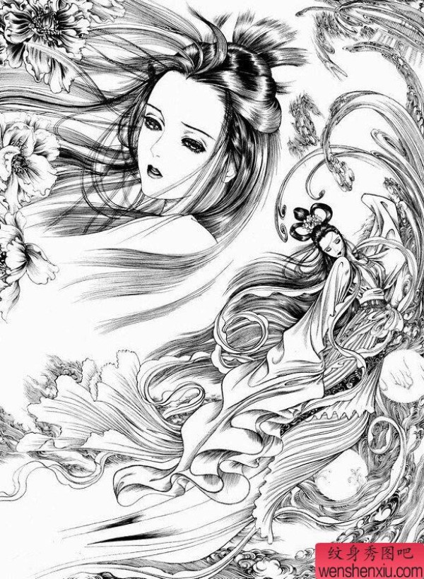 能面万媚纹身手稿_52张日式能剧面具纹身手稿图案素材欣赏