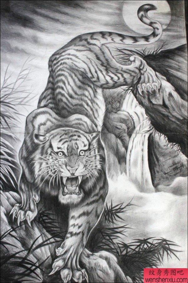 龙纹身手稿_一组老传统黑灰龙手稿纹身图案