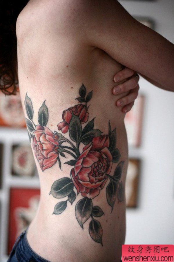 纹身图吧分享一张侧腰玫瑰花纹身图案