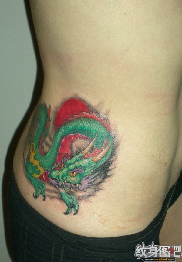 女孩腰部的青龙纹身图案