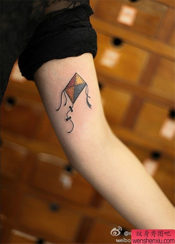 纹身图吧分享一张手臂彩色风筝纹身图案
