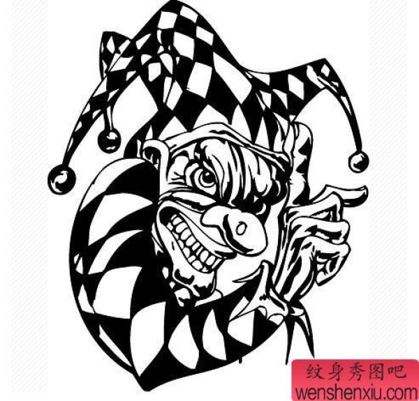 纹身图吧分享一张小丑纹身手稿图案