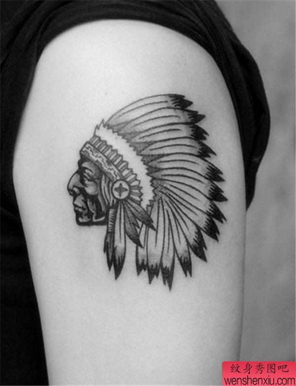黑灰肖像印第安头像纹身图案