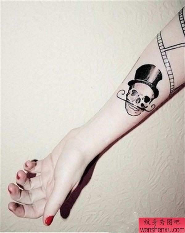 胳膊骷髅纹身图案