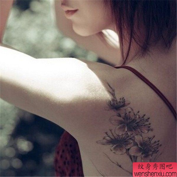 女生背部梅花纹身图案