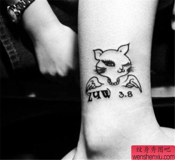 脚踝小猫天使纹身图案