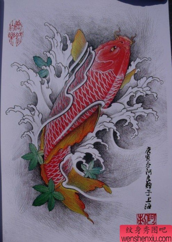 中华锦鲤纹身手稿(8)