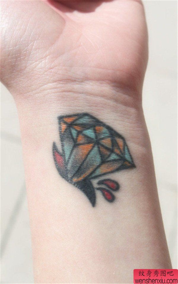纹身图吧分享一张手臂彩色钻石纹身图案
