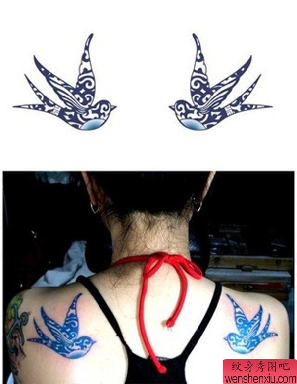 背部双燕子纹身图案