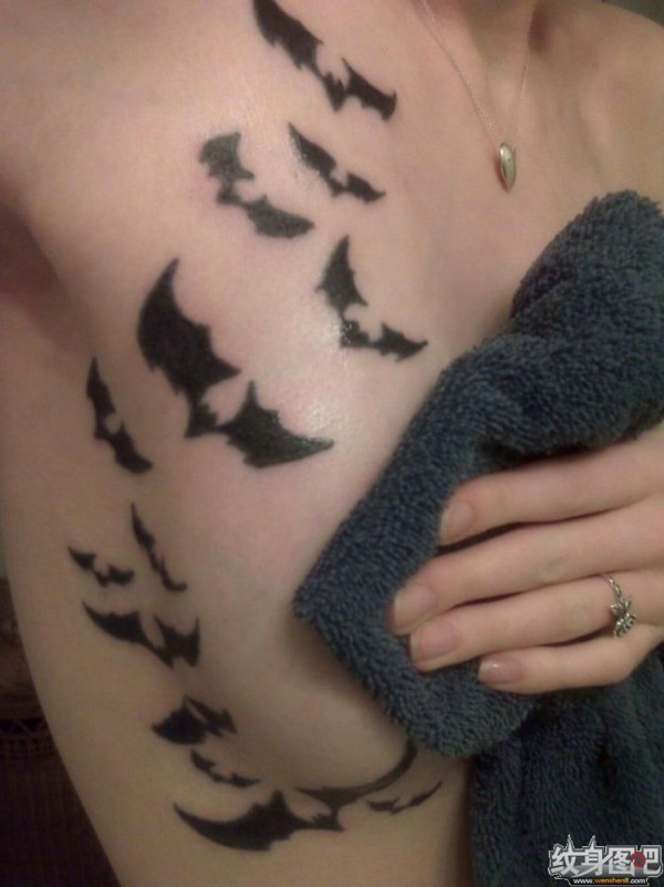 女孩胸部13只黑色的蝙蝠图腾纹身图案