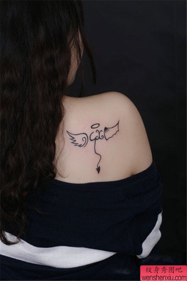 女生肩部翅膀纹身图案