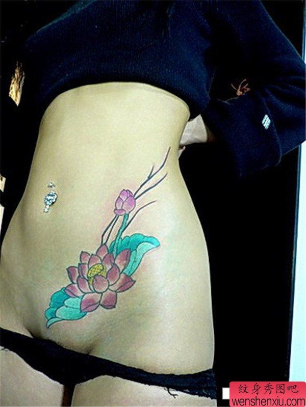 腰部彩色莲花纹身图案