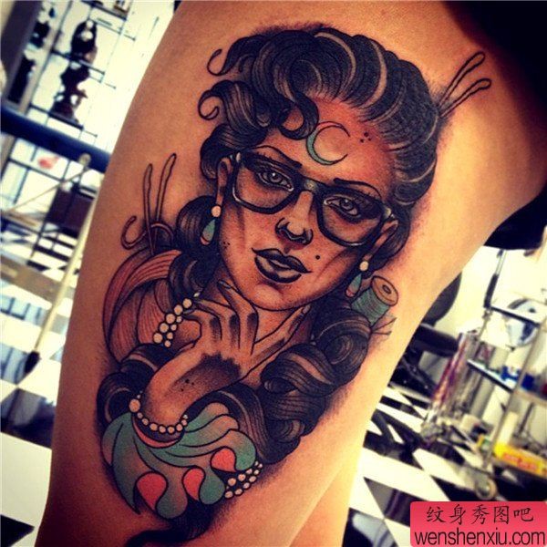 最好的纹身馆分享一张腿部个性人物肖像纹身图案