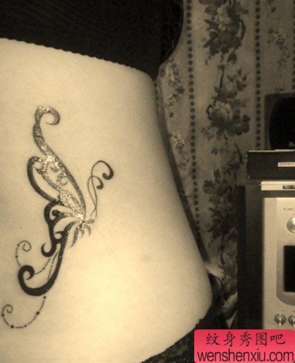 纹身图吧分享一张女性腰部蝴蝶纹身图案