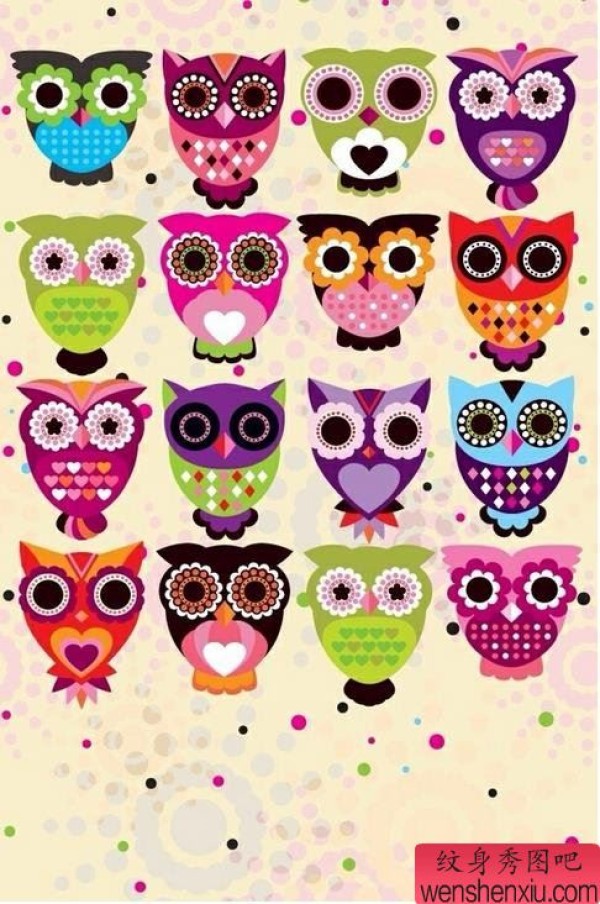 萌版猫头鹰纹身图案