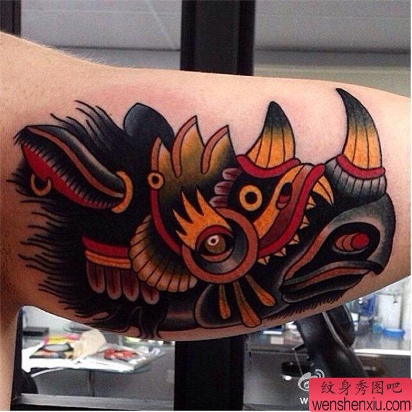 纹身图吧分享一张手臂school犀牛纹身图案