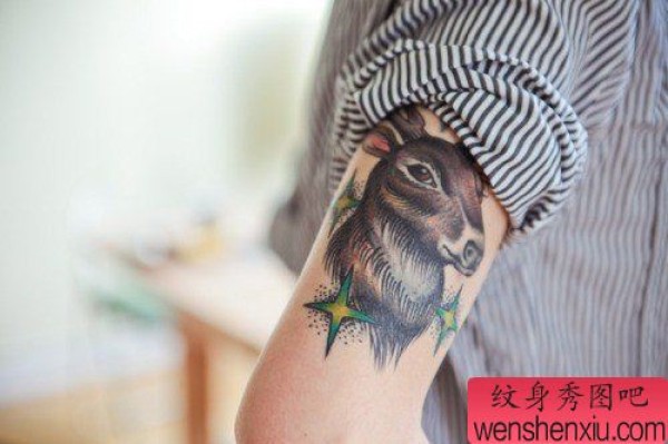 手臂彩色羚羊纹身图案