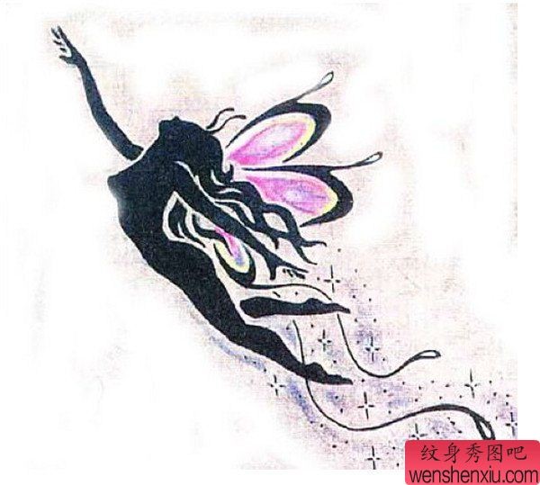 黑白天使精灵纹身图案