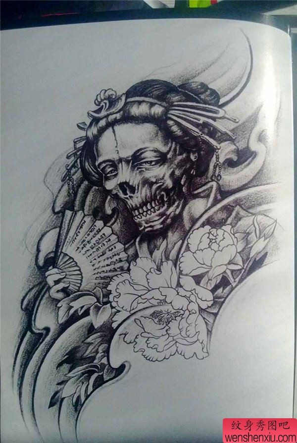 能面万媚纹身手稿_52张日式能剧面具纹身手稿图案素材欣赏