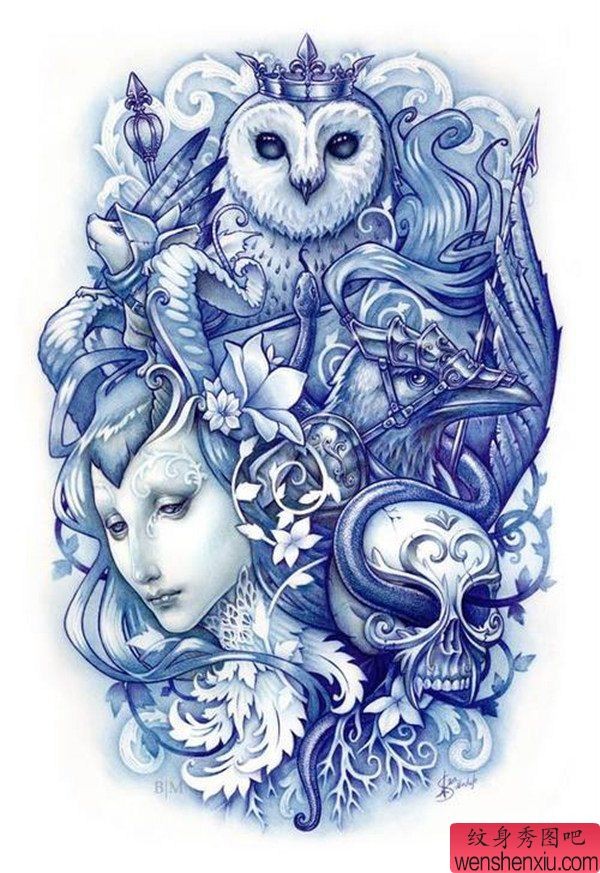 能面万媚纹身手稿_52张日式能剧面具纹身手稿图案素材欣赏